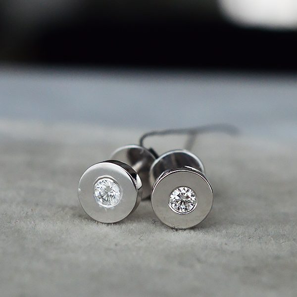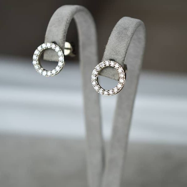 Rankų darbo auskarai su deimantais, pagaminti iš balto aukso. Užsukamas užsegimas. Kiekvienas akmuo yra individualiai inkrustuotas. Aukštos kokybės deimantai yra su kokybę patvirtinančiu sertifikatu.