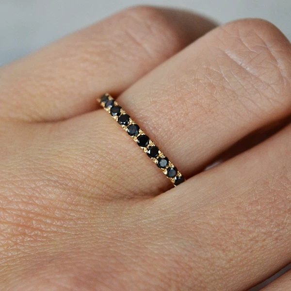 Auksinis žiedas, inkrustuotas juodais deimantais, juvelyro rankų darbo. Juodi deimantai turi kokybę patvirtinantį sertifikatą. Pagamintas iš geltono aukso.