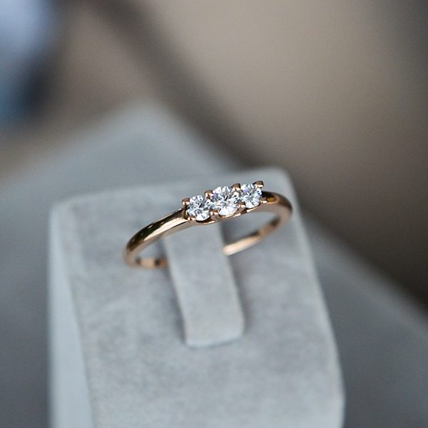 Sužadėtuvių žiedas, inkrustuotas aukštos kokybės deimantu, juvelyro rankų darbo. Deimantas turi kokybę patvirtinantį sertifikatą. Pagamintas iš raudono aukso.