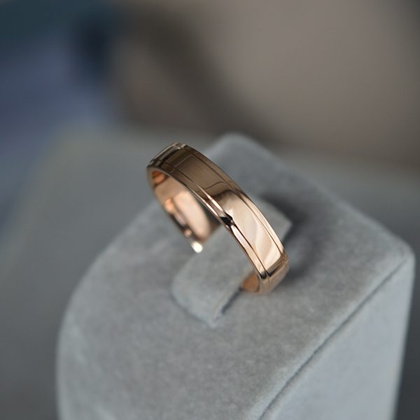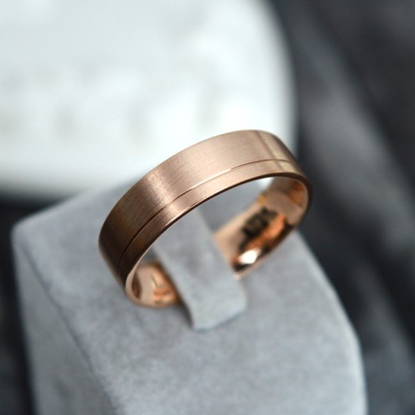 Nuotraukoje pavaizduoti žiedai yra 4 mm pločio, pagaminti iš raudono aukso.