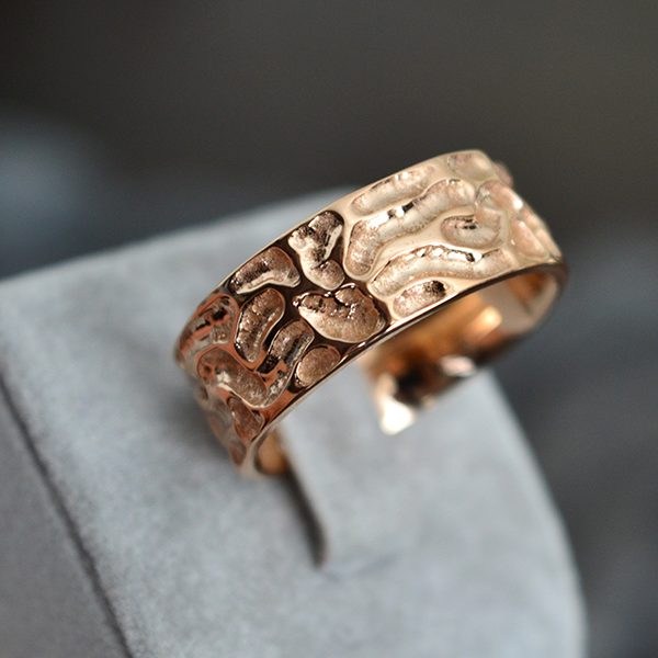 Rankų darbo vestuviniai žiedai nelygiu paviršiumi. Su komforto zona. Gamybos kaina apskaičiuojama individualiai pagal Jūsų matmenis.
