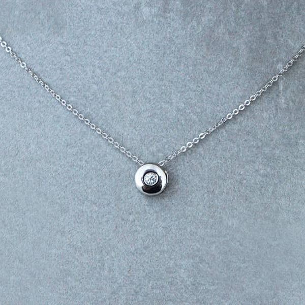 Auksinė grandinėlė su deimanto pakabuku. Aukštos kokybės deimantas yra su kokybę patvirtinančiu sertifikatu. Pagaminta iš balto aukso.