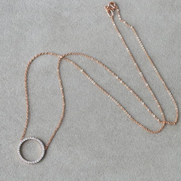 Raudono aukso grandinėlė su raudono aukso ovaliu pakabuku. Pakabukas inkrustuotas deimantais. Deimantai yra su kokybę patvirtinančiu sertifikatu.