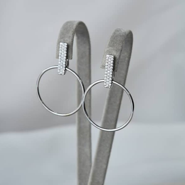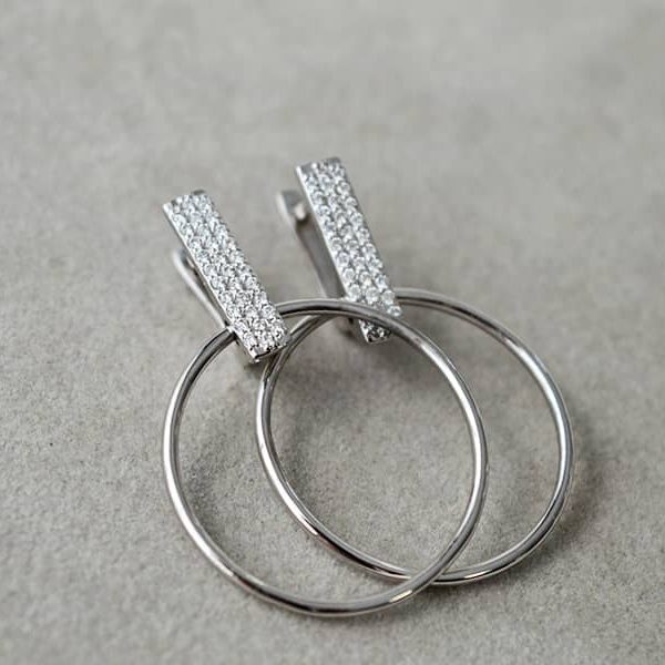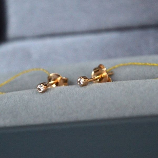 Auskarai su deimantais, pagaminti iš balto aukso. Užsukamas užsegimas. Aukštos kokybės deimantai turi kokybę patvirtinantį sertifikatą.
