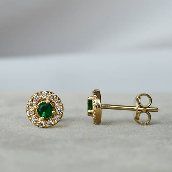Auksiniai auskarai su deimantais ir smaragdais