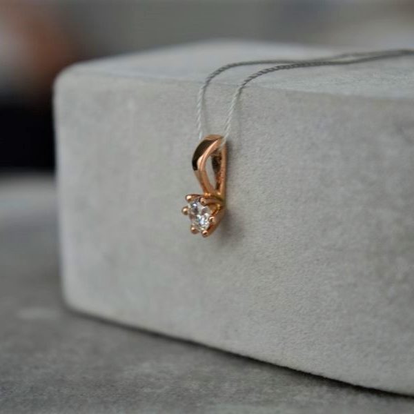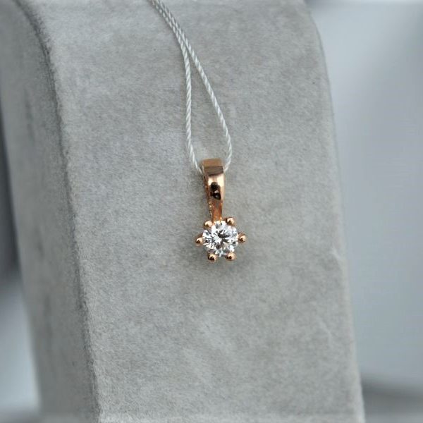 Rankų darbo auksinis pakabukas su deimantu. Aukštos kokybės deimantas yra su sertifikatu. Pagamintas iš raudono aukso.