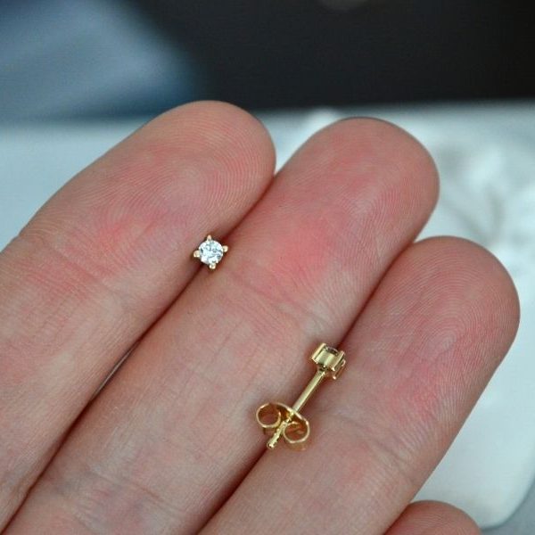 Rankų darbo auskarai su deimantais, pagaminti iš geltono aukso. Kiekvienas akmuo yra individualiai inkrustuotas. Aukštos kokybės deimantai yra su kokybę patvirtinančiu sertifikatu.