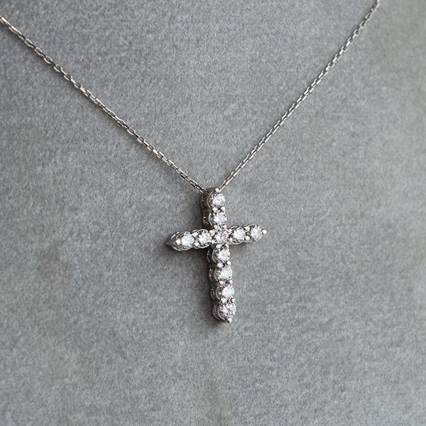 Juvelyro rankų darbo auksinis kryželis su aukštos kokybės deimantais. Deimantai yra su kokybę patvirtinančiu sertifikatu. Pakabukas ir grandinėlė pagaminti iš balto aukso.