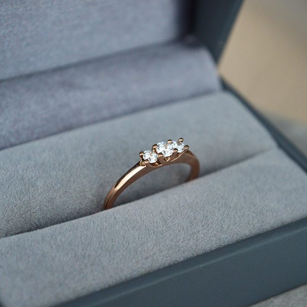Sužadėtuvių žiedas, inkrustuotas aukštos kokybės safyrais, juvelyro rankų darbo. Safyrai turi kokybę patvirtinantį sertifikatą. Pagamintas iš raudono aukso.