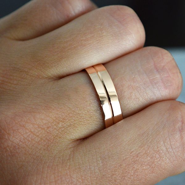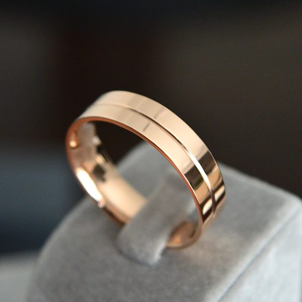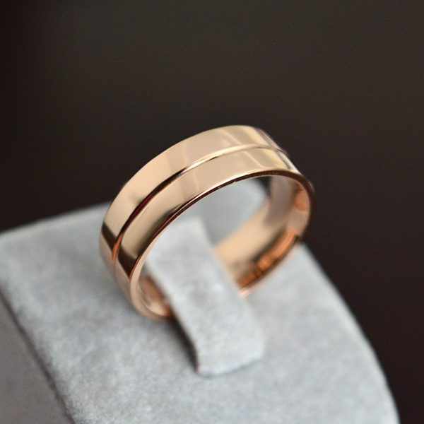Nuotraukoje pavaizduoti žiedai yra 6 mm pločio, pagaminti iš raudono aukso.